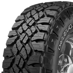 With a rugged tread compound meant to hold up even under heavy loading and towing the goodyear wrangler duratrac is an on off road commercial traction tire meant for use with multi purpose full sized pickups and other sport utility and commercial vehicles.
